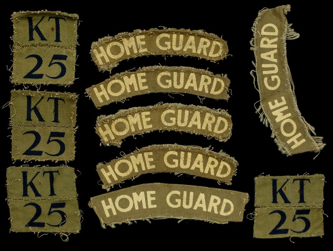 Home Guard Insignia, comprising shoulder titles (3 pairs), with KT25 Shoulder designation (Tunbridge Wells) (2 pairs), all previously removed from uniform, very fine (10)