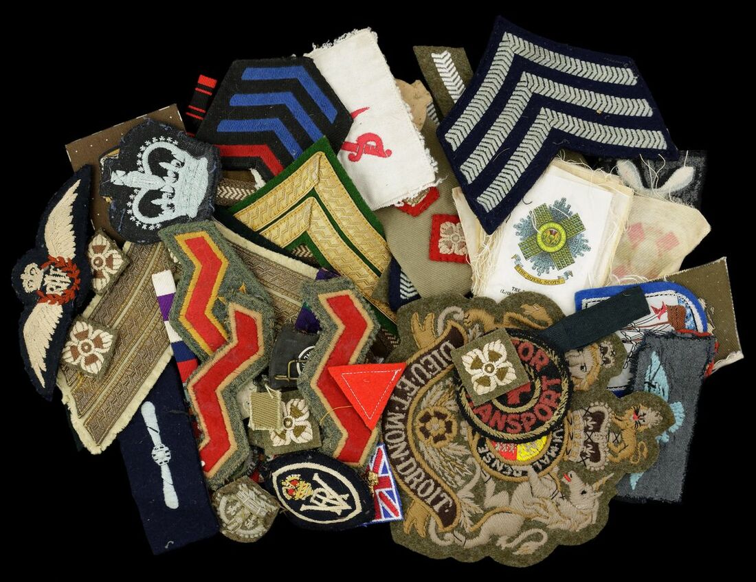 Cloth Badges and insignia, an assortment of mainly British issues to include rank Badges, shoulder Badges, epaulettes for a Lieutenant-Colonel, uniform ribands and some Civilian badges viewing advised, the majority removed from uniform, very fine (Lot)
