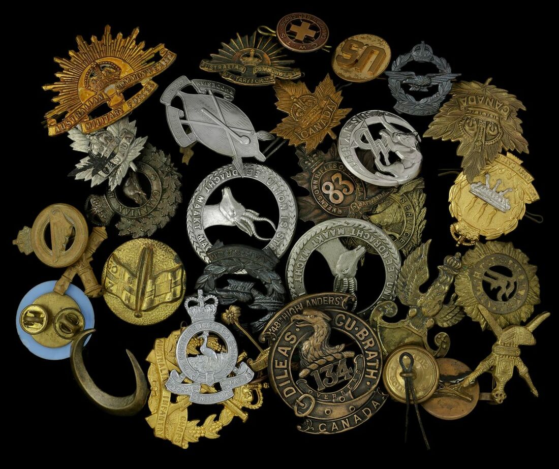 Cap Badges, including Badges from Canada, Australia, South Africa, as well as some other insignia, some later strikes, very fine overall (Lot)