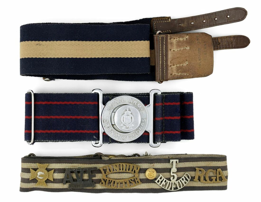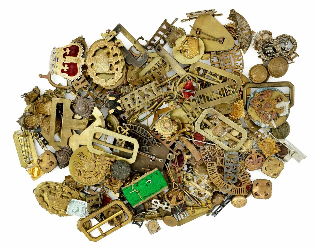 Assorted Insignia, a collection of Shoulder Titles, Rank insignia, Buttons, Stable belts, Belt buckles and a bed plate for the Devonshire Regiment named '5486719 A. Murhall', viewing advised, very fine (Lot)
