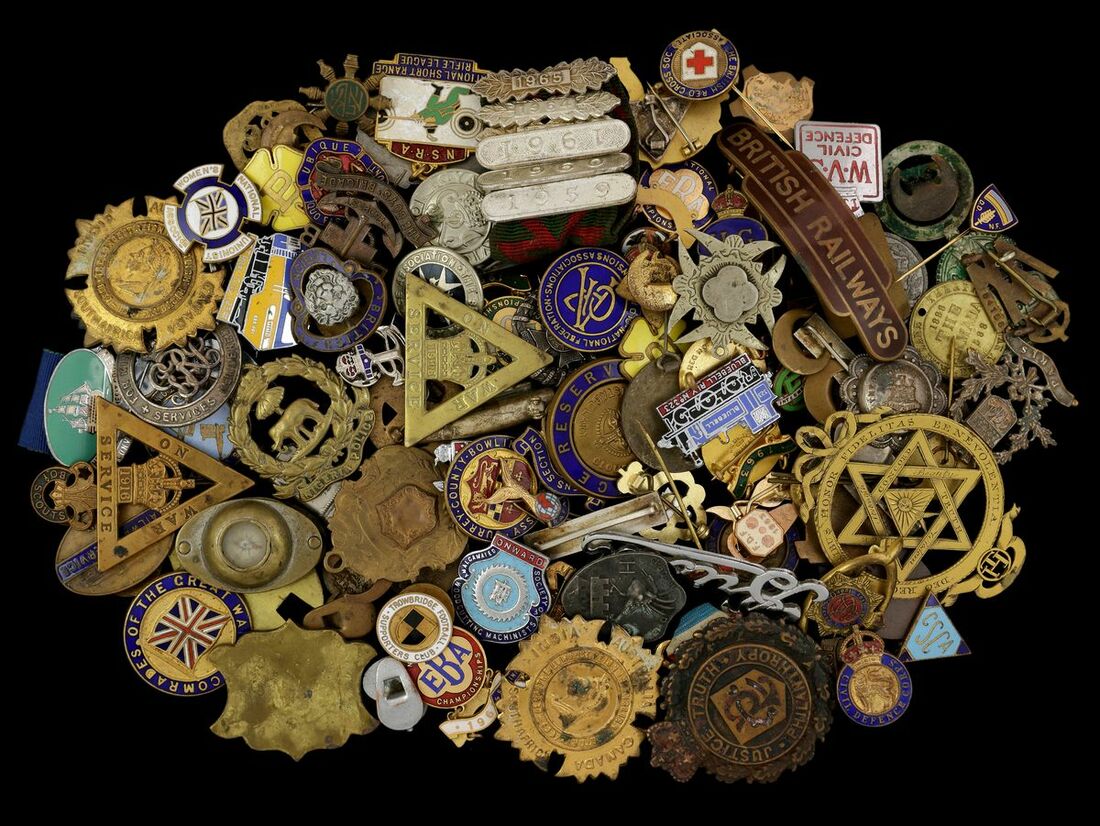 Civilian and Military Badges, an assortment to include Army, Veterans, Police, viewing advised, fine or better
