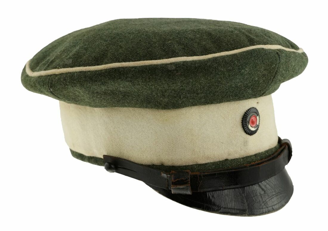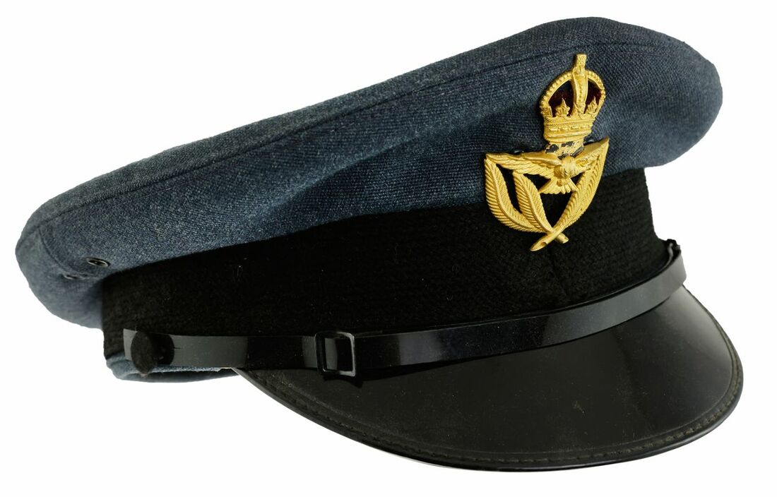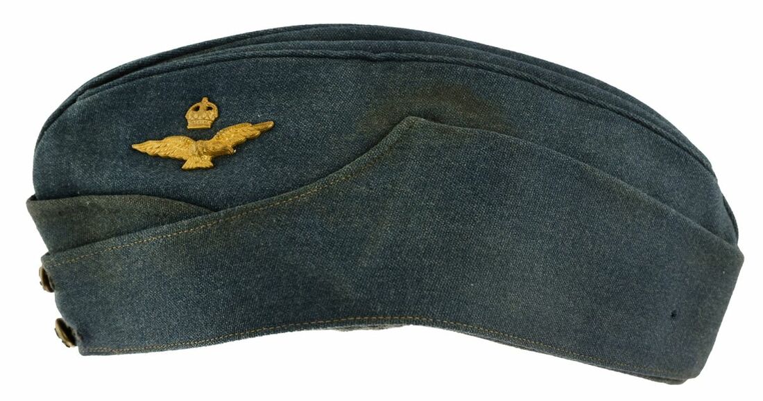 R.A.F. Officer's side cap fitted with 'King's crown' insignia, both privately marked (Todhunter); an R.A.F. Warrant Officer's peaked cap; two different W.R.A.F. caps; a Lady's B.R.C.S. cap by Scott & Co of 1 Old Bond Street; a German-style M1910 peaked cap, with two aviation-related ties used condition throughout, sold as viewed (Lot)