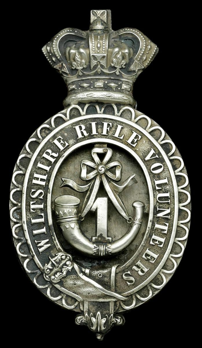 Wiltshire Rifle Volunteers, a Victorian period Officer's cross belt Badge, 105mm x 58mm, with four screw fittings to reverse, very fine