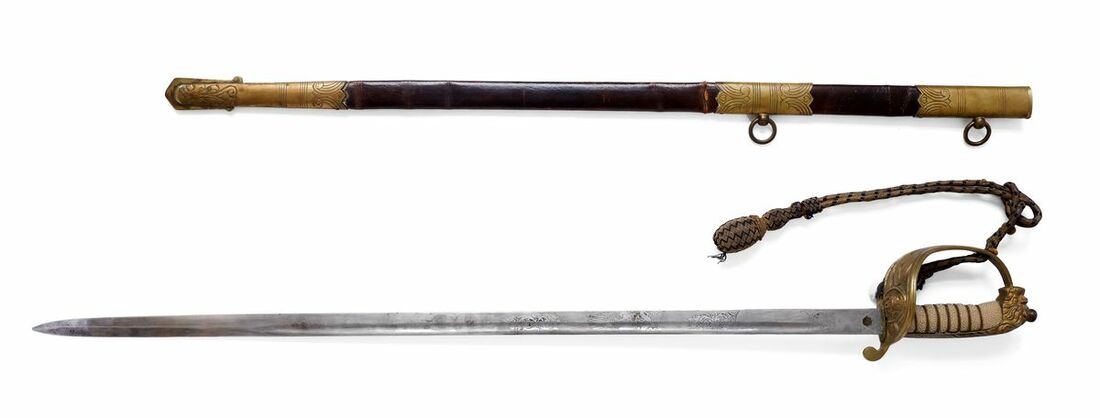 The Royal Navy officer's Full Dress sword attributed to Commander Charles Frederick Nock D.S.O, O.B.E., who was awarded a well-deserved Distinguished Service Order in 1942 'For courage, endurance, and devotion to duty in Minesweeping operations'