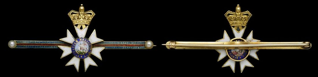 Tie Pin of the Order of St Michael and St George in gold (unmarked) and enamel with pearls on the edges, 28mm x 58mm, some light enamel chipping, very fine