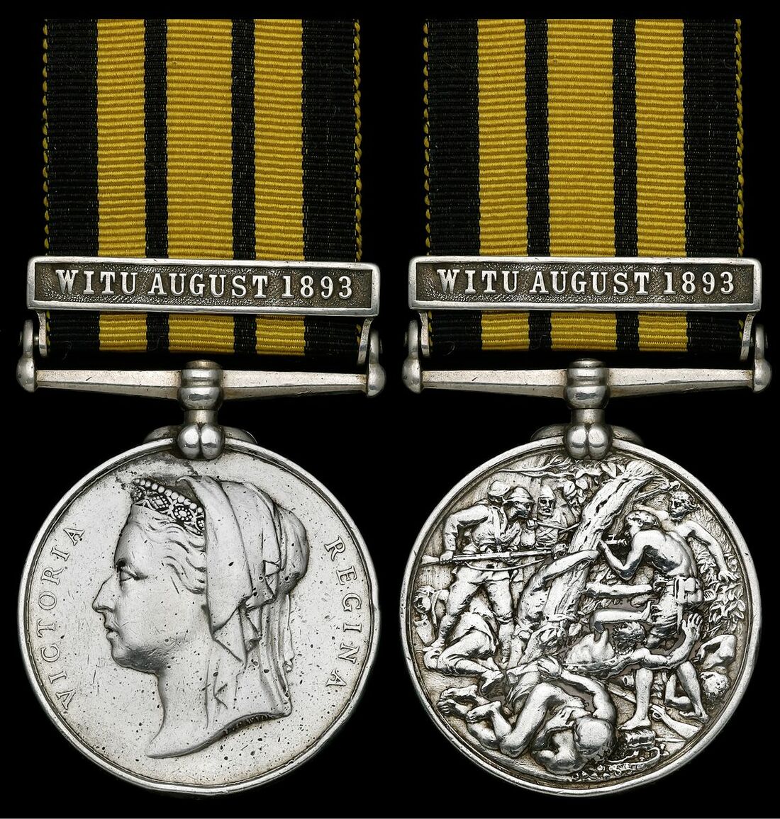W. C. Butler is listed as being present for the attack upon the Sultan of Witu's strongholds of Pumwani and Jongeni. The medal roll notes his application for a duplicate medal on 20 July 1906, having presumably lost the original; sold together with an extract from African General Service Medals and a copied medal roll.