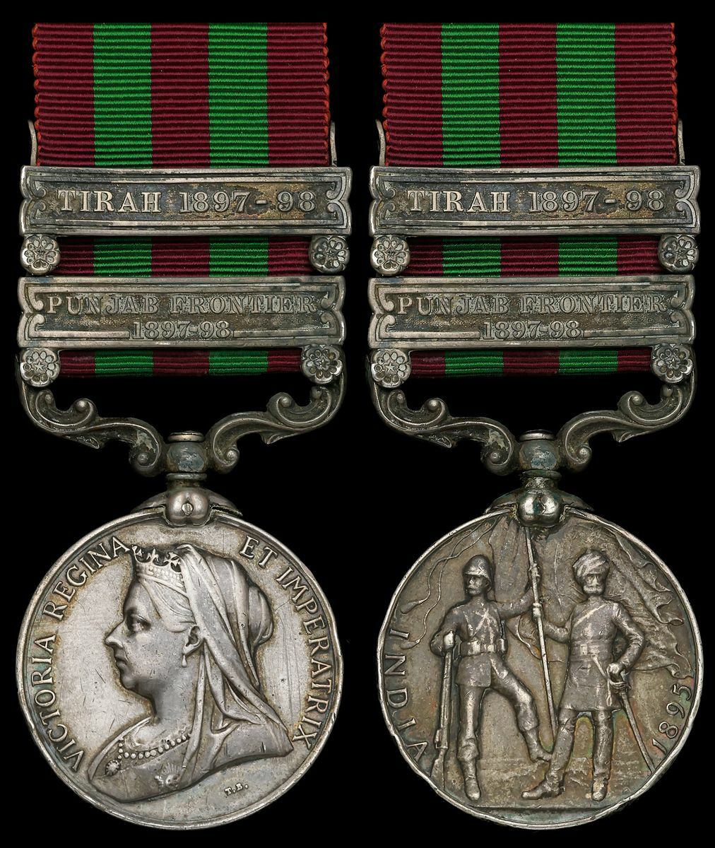 India General Service 1895-1908, 2 clasps, Punjab Frontier 1897-98, Tirah 1897-98 (10351 Gunr G. Taylor. No.1 Mtn By. R.A.), contact marks and edge bruises, otherwise very fine