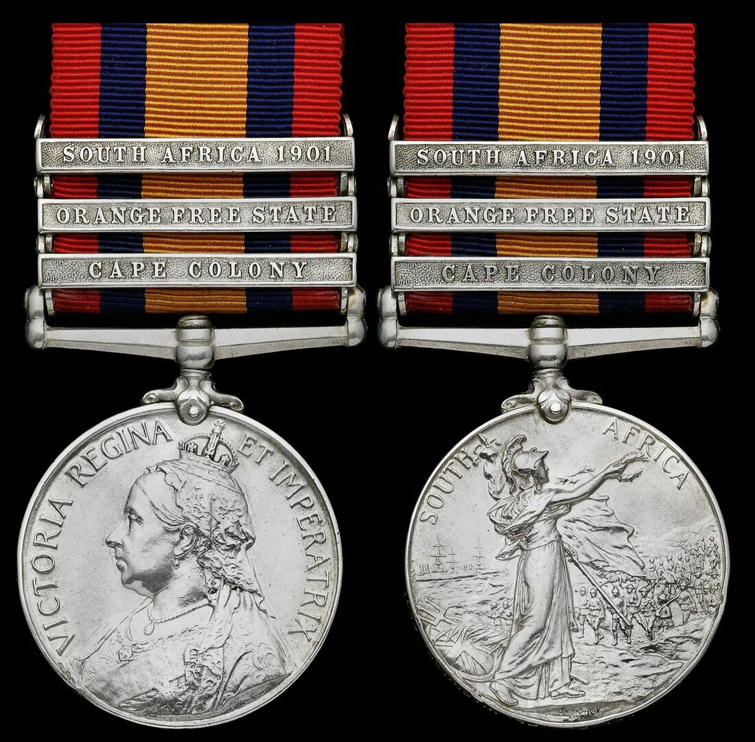 Queen's South Africa 1899-1902, 3 clasps, Cape Colony, Orange Free State, South Africa 1901 (6878 Cpl J. Freer, RL: Warwick: Regt)