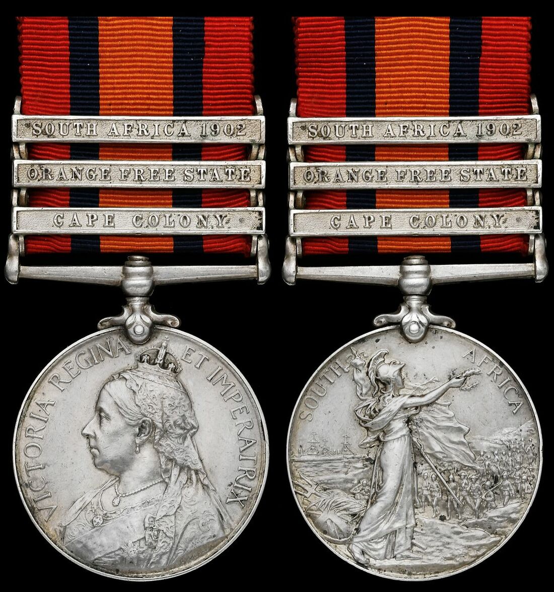 Queen's South Africa 1899-1902, 3 clasps, Cape Colony, Orange Free State, South Africa 1902, (5326 Dvr: J. E. Brading. 28th Bty: R.F.A.) very fine