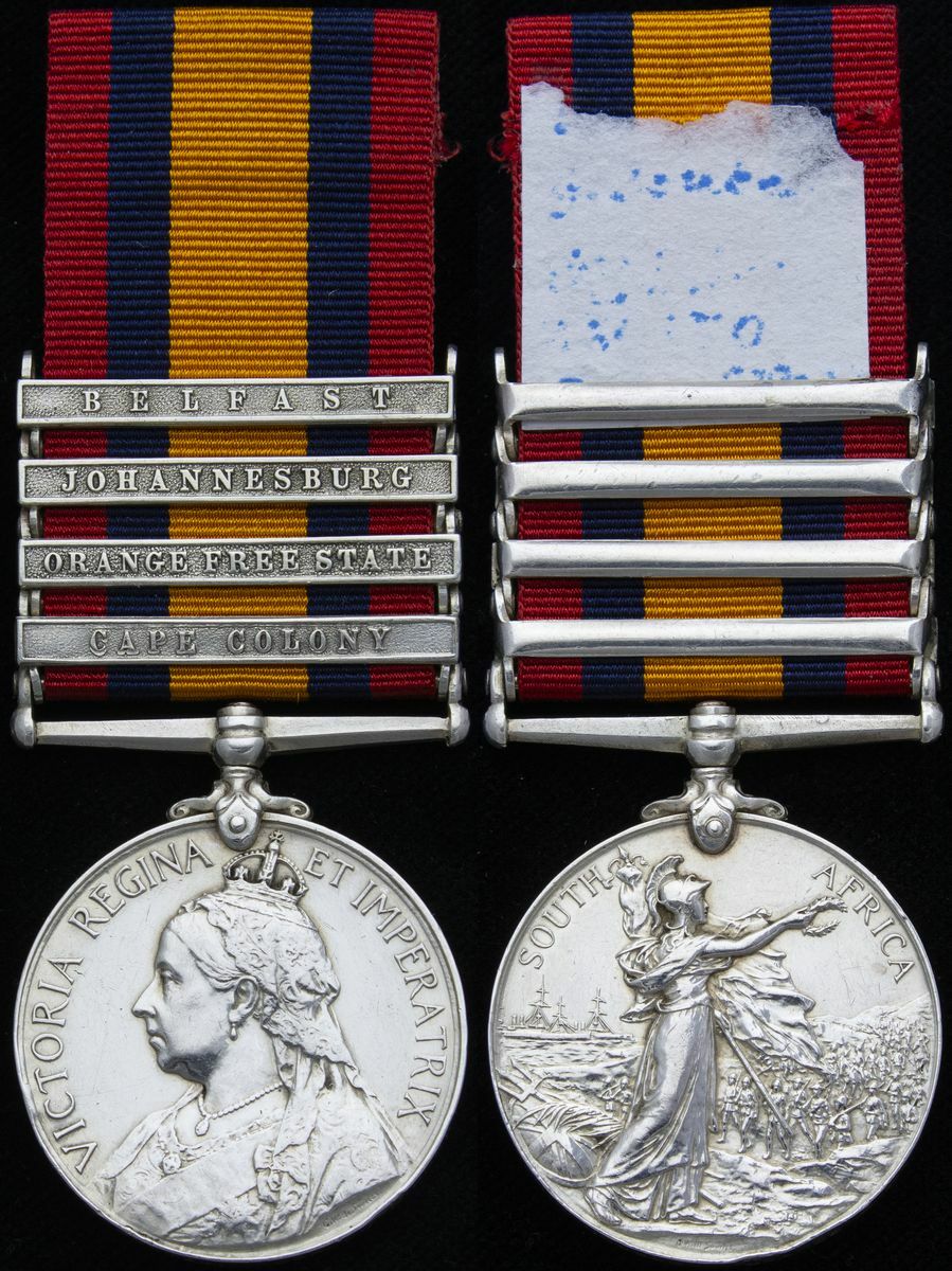 Queen's South Africa 1899-1902, 4 clasps, Cape Colony, Orange Free State, Johannesburg, Belfast (2288 Pte G. Souter, Gordon Highrs:), small edge bruise, otherwise very fine