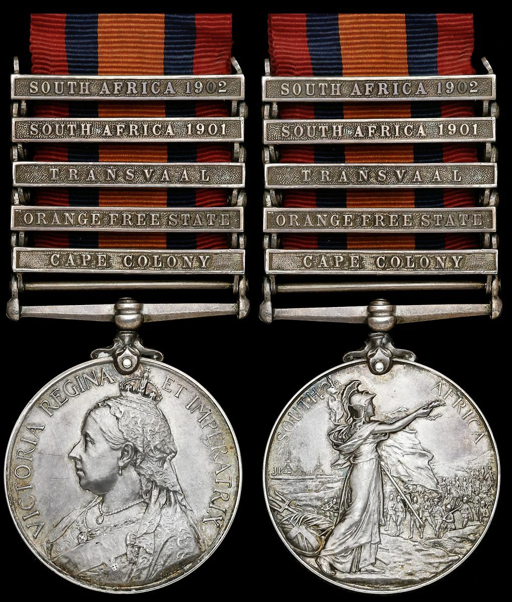 Queen's South Africa 1899-1902, 5 clasps, Cape Colony, Orange Free State, Transvaal, South Africa 1901, South Africa 1902 (29990 Pte W. D. Young 107th Coy Imp: Yeo:), a couple of light contact scratches, otherwise very fine