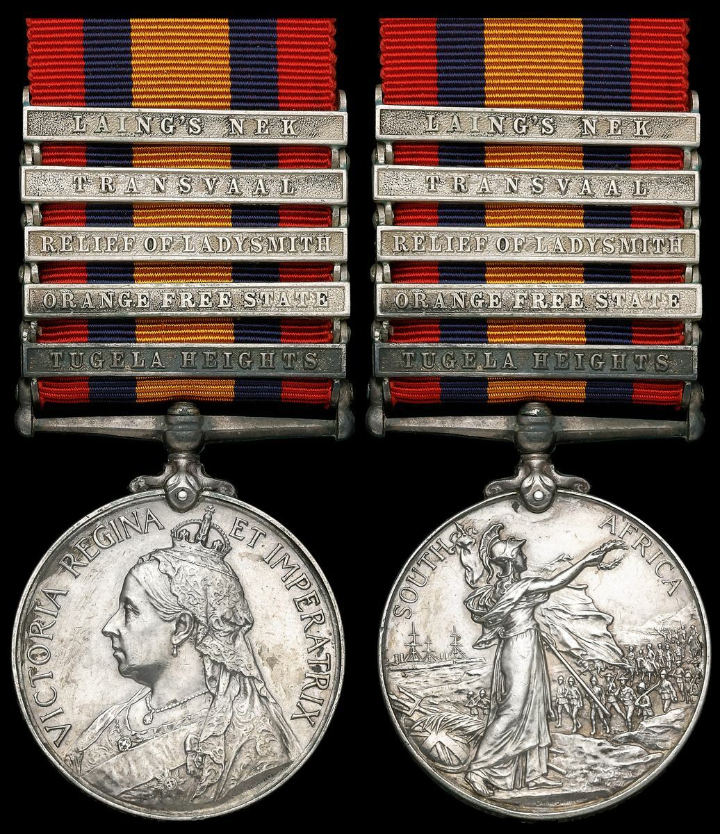 Queens South Africa 1899-1902, 5 clasps, Tugela Heights, Orange Free State, Relief of Ladysmith, Transvaal, Laing's Nek (3736 Cpl. H. Payne. Middlesex Regt.), good very fine