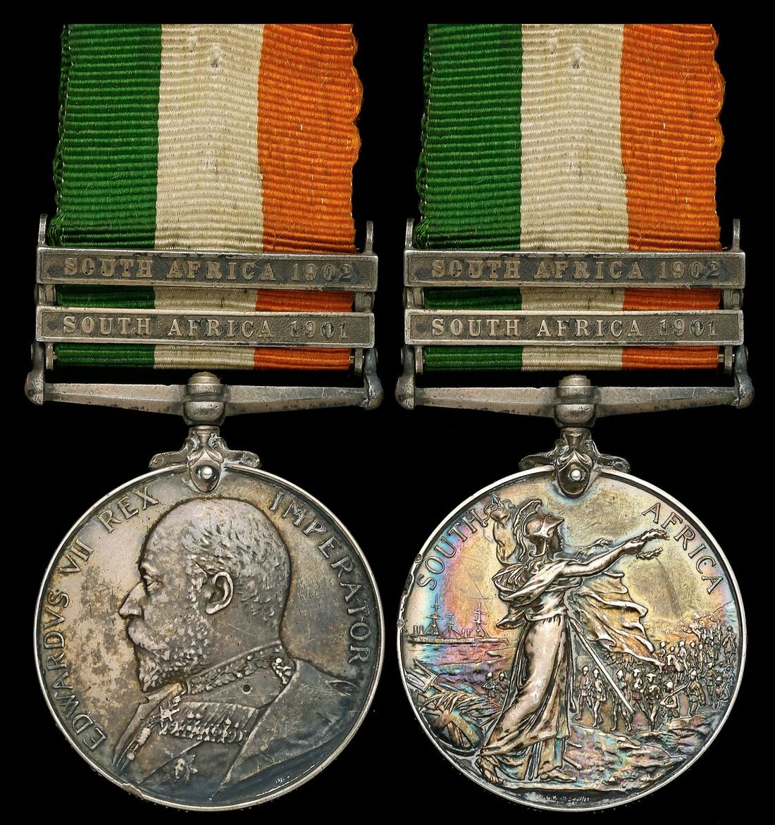 William Henry Green was born at Brierley Hill, Staffordshire and enlisted on 21 September 1892, he served in Malta and Bermuda prior to serving in South Africa between 17 December 1899-14 September 1902 and is entitled to a Queen's South Africa medal with clasps Cape Colony, Transvaal and Wittebergen, with note "To 5th M.I.", the King's South Africa shows him serving with the 2nd Bn Worcestershire Regiment. He was discharged on 20 September 1904 having Time Expired.