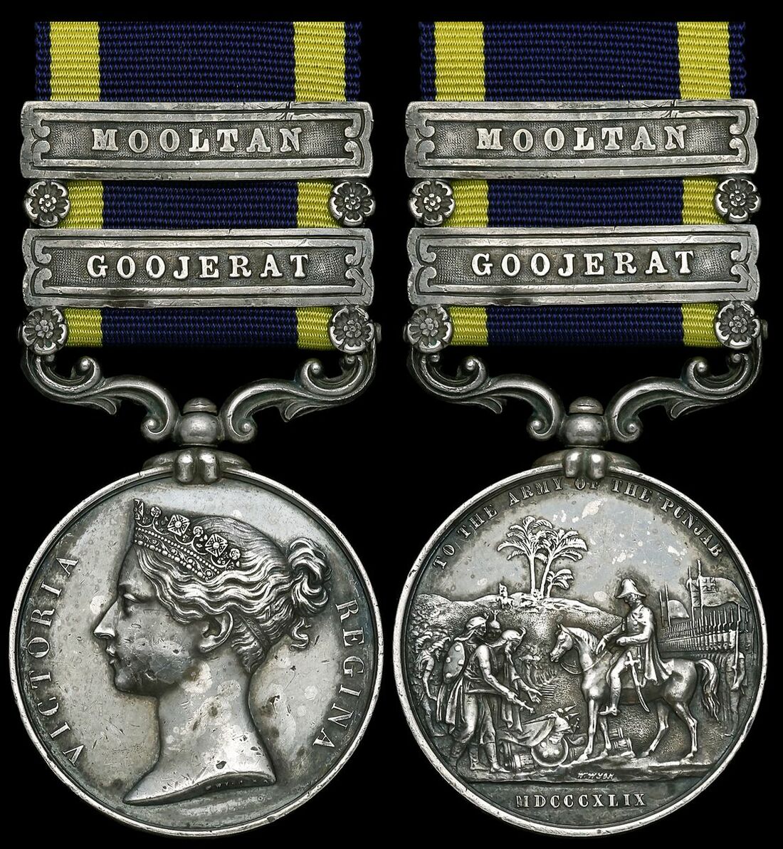 Punjab 1848-1849, 2 clasps, Goojerat, Mooltan (Thos Pacey, 10th Foot.), contact wear and contact marks, very fine