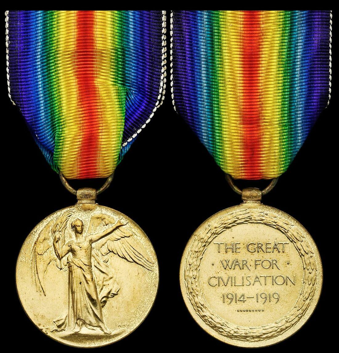 A 'Battle of the Somme Stretcher Bearer' casualty's Victory Medal awarded to Private J. F. Bates, 27th Field Ambulance, Royal Army Medical Corps, who died of wounds received when rescuing the wounded of 8th Battalion, Seaforth Highlanders on 7 November 1916