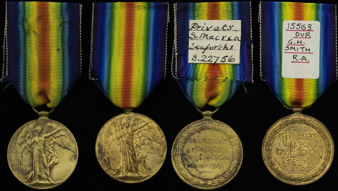 Victory Medal 1914-19 (2) (S-22753 Pte. S. Macrae. Seaforth.; 15563 Dvr. G. H. Smith. R.A.), good very fine (2)