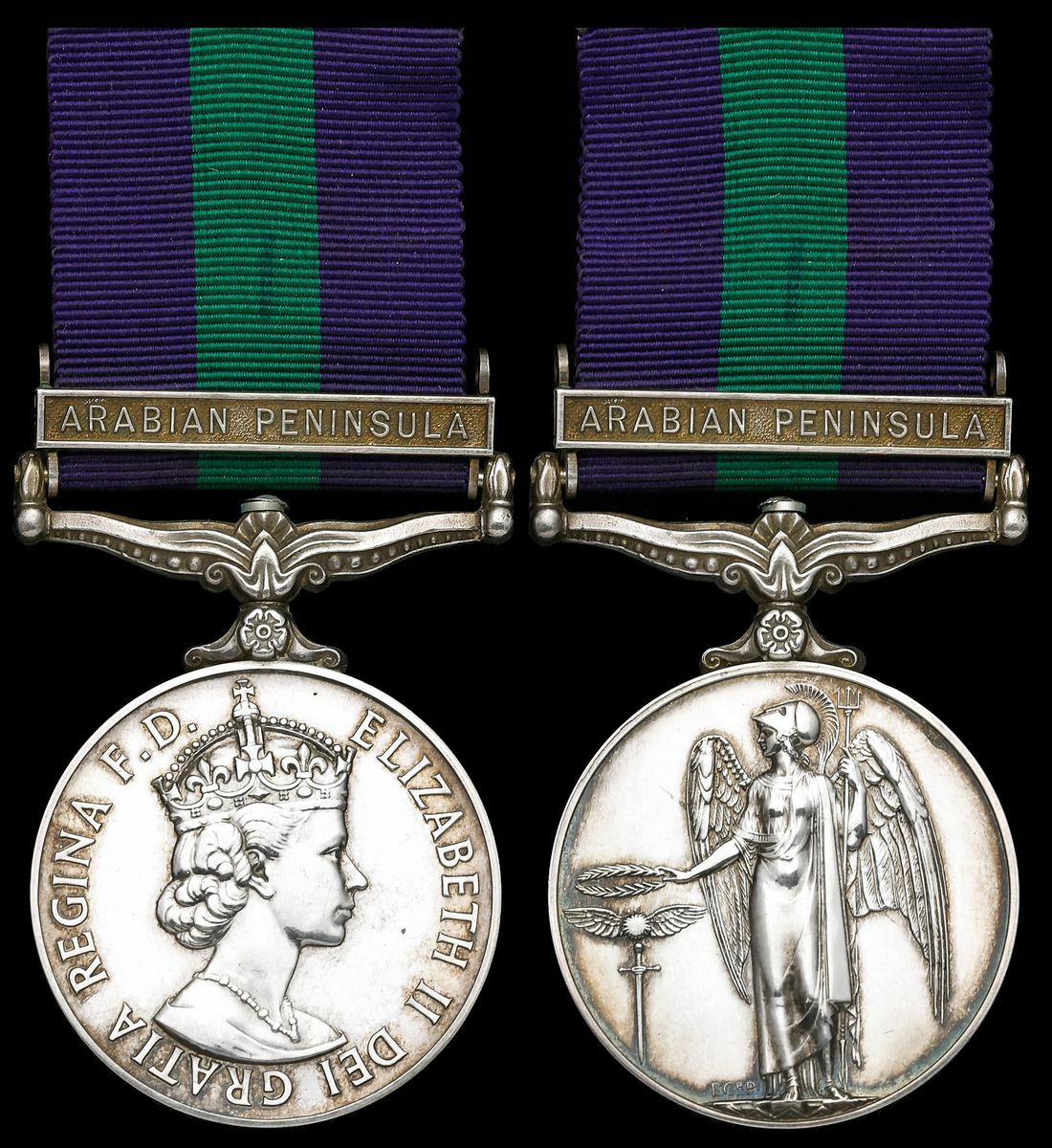 General Service 1918-62, 1 clasp, Arabian Peninsula (23598226 Pte. R. R. Wilcox. R. Warwick.), mounted as worn, good very fine