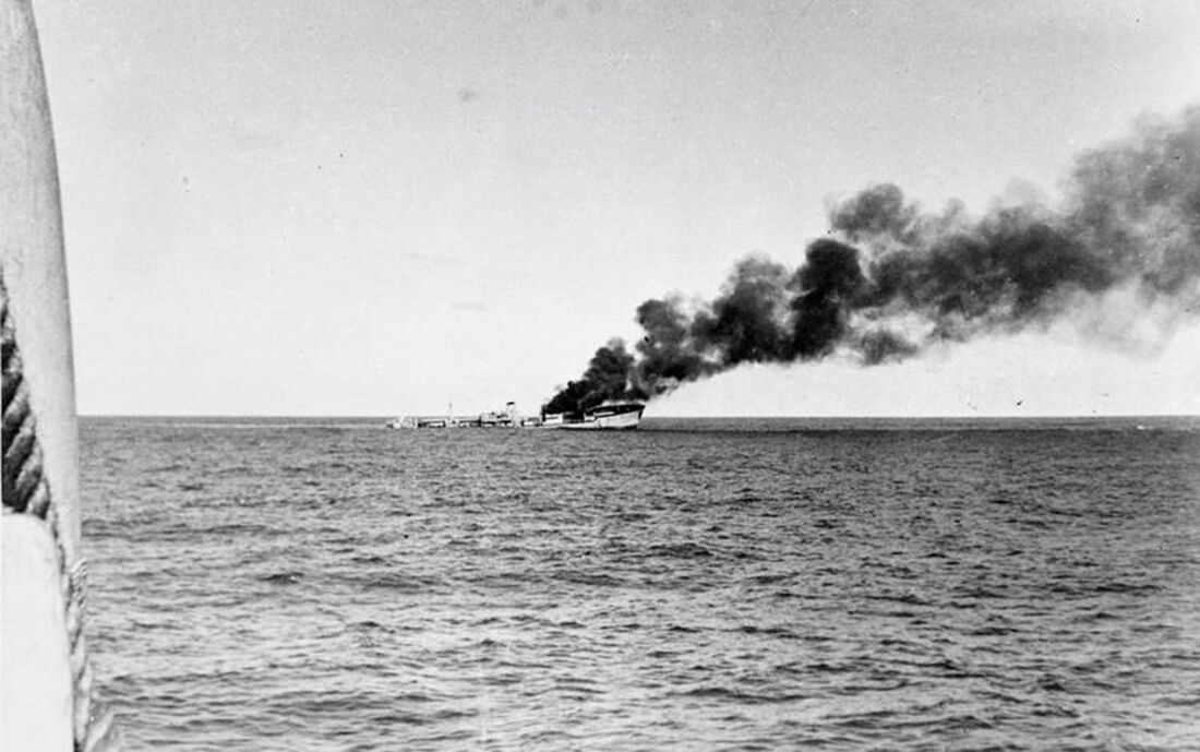 "I tried to find out the ship's identity. His answers to my signals were unsatisfactory and suspicious. Then he made a signal, 'Be careful, I saw a submarine this morning.' If anything was calculated to arouse suspicion it was such a message from a strange ship. It was a very stupid signal to make. So we closed to about 9,000 yards and I ordered him to stop. To emphasise the signal, we fired two shells across the bows. Within a few minutes, even before the enemy ship had come to rest, two boats were lowered and were quickly followed by others. Then the bridge burst into flames. Immediately afterwards there were considerable explosions under the bridge and superstructure aft and, two minutes later, just after the last boats had got away, heavy scuttling charges were heard and seen to detonate. His scuttling organisation was perfect."