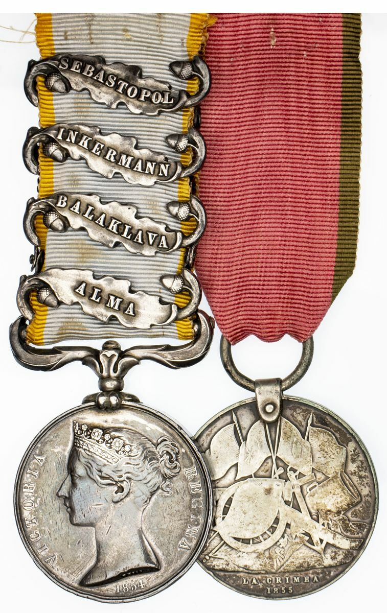 William Watts was born at St. Johns, Leeds in 1833 and attested at Hull on 4 May 1852 with the service number 2999 having previously been a groom. He was to serve almost eight of his ten years with the Regiment abroad, first at Malta but later joining the British Army in the Crimea where his service records confirm he earned four clasps to his medal. Later Watts was posted to the West Indies where he was to serve for a little over two years. He was discharged on 24 June 1862; sold together with copied service papers.