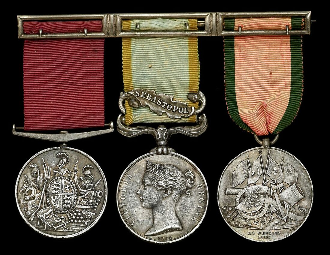 Crimea 1854-56, 1 clasp, Sebastopol (Captn. W. Little. 88th Regt. 1855.), contemporarily engraved naming; Turkish Crimea 1855, contemporary tailor's copy marked 'J.B.'; Army L.S. & G.C., V.R. (Serjt. Major W. Little 88th Regt. 1854.), mounted on triple buckle riband bar by Hunt & Roskell with gold pin, this last with replacement suspension, very fine (3)