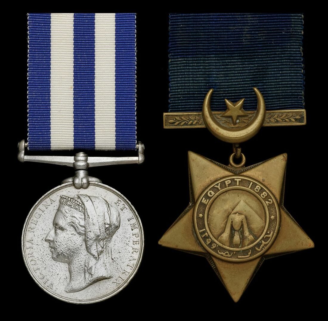 Egypt 1882-89, no clasp (S. Lowther. Pte. R.M. H.M.S. I[...]onstant); Khedive's Star 1882, unnamed as issued, extremely heavy pitting and wear overall to both, ship name partially obscured, overall good fine (2)