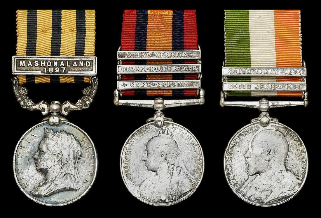 After serving for two years and 47 days on the sub-continent, he and his comrades sailed for South Africa on 22 October 1895, ostensibly for garrison duty and to, along with other regiments, maintain a British presence in the Colony of Natal. Once in Natal, they inherited the horses of the 3rd Dragoon Guards and went by train to Pietermaritzburg. This was a routine posting but while they were there trouble flared up in Matabeleland. In addition to earning the Medal, Guy received the 1897 clasp for supressing the subsequent uprising amon the Mashona.