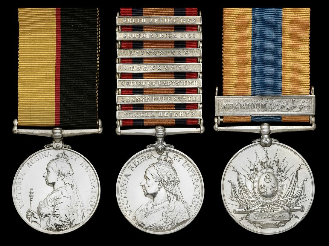 Posted to the Army Reserve after the Sudan Campaign, Lowther returned to the colours for service in the Boer War with the 2nd Battalion Northumberland Fusiliers. Seeing heavy fighting in the opening years of the conflict he was attached to the 10th Mounted Infantry in 1901. Whilst there, he contracted a fatal disease which he succumbed to at Tabaksburg on 31 December 1901; sold together with copied medal rolls and transcriptions of medal rolls.