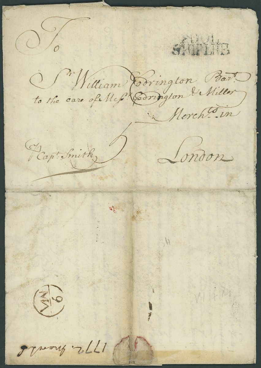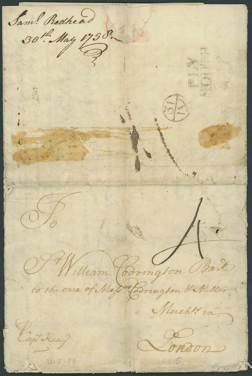 1758 (20 Apr.) entire letter from Samuel Redhead, rated "4" and showing unframed