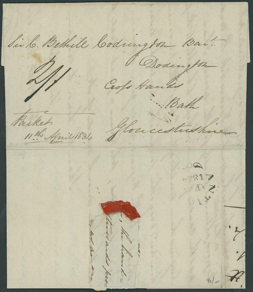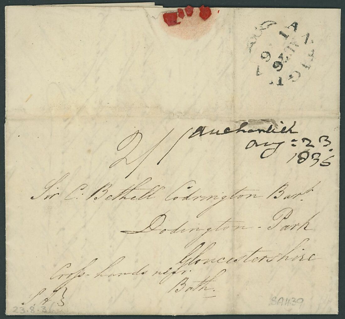 1830-36 entire letters (5) to Sir Bethill Codrington at Dodrington (one re-addressed to London), all rated "2/1" with two changed to "4/2", all showing small