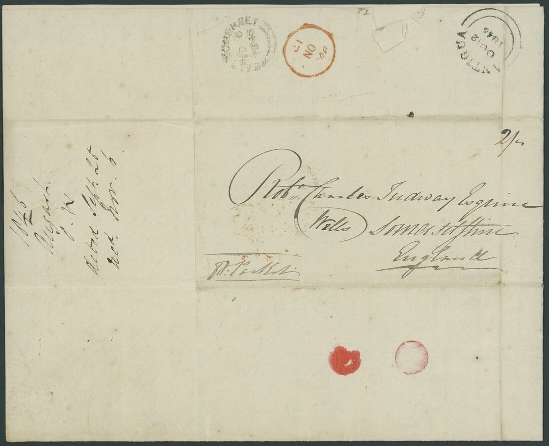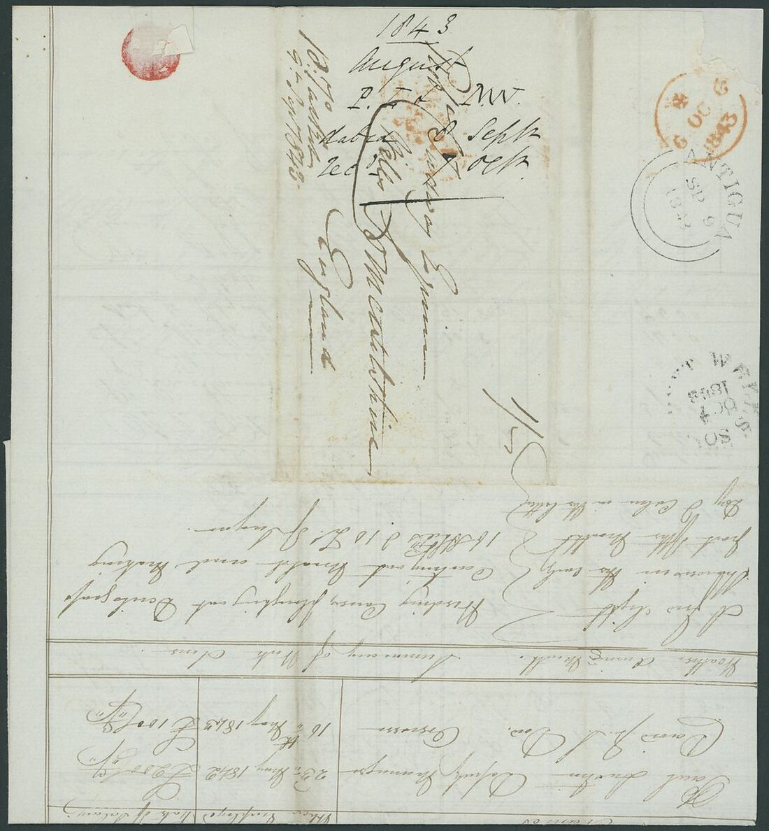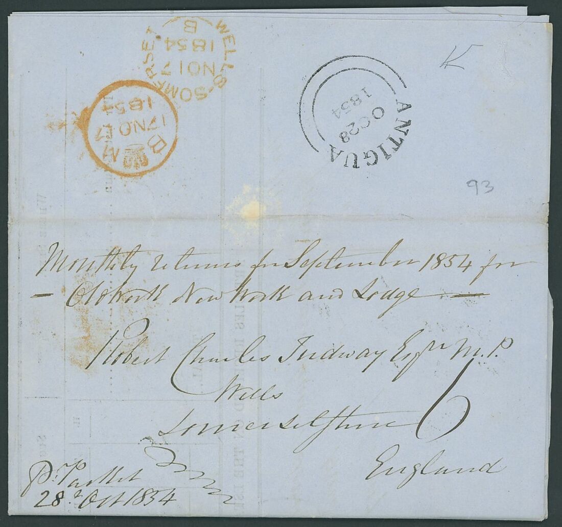 1841-54 entire letters (21) showing rates of "6" (4), "1/-" (10) and "2/-" (7), all showing Antigua double-arc d.s. on reverse, mostly average strikes but at least six fine to superb; condition generally fine