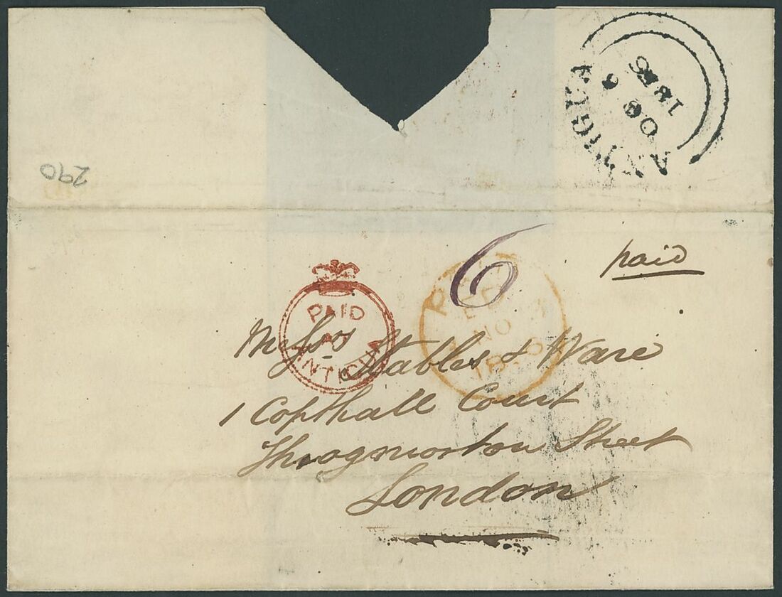 1856 (6 Oct.) entire to London, rated "6", showing very fine Crowned circle