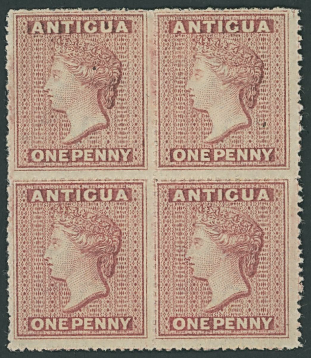 1863-67 wmk. Small Star, rough perf 14 to 16 1d. dull rose block of four, fine unused with large part original gum. S.G. 6