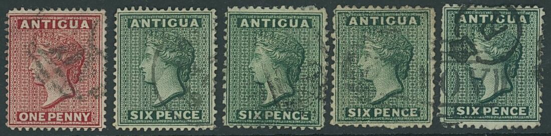 1872 CC, perf 12½ 1d. scarlet and 6d. green with watermark reversed, 6d. blue-green (2) with watermark reversed and watermark inverted and reversed, and 6d. blue-green lightly cancelled "A02" and by almost complete Crowned circular