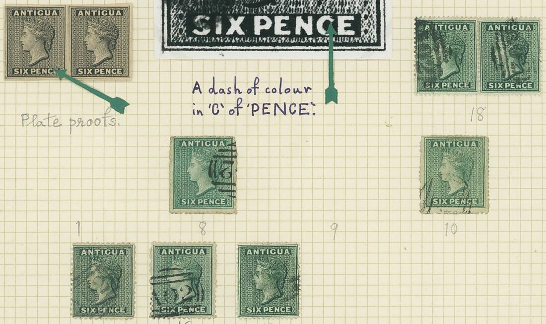 [91] Sefi No. 2: Plate proof pair in black; 1863-67 green (two shades); 1872 blue-green (2); 1876 blue-green (2, one in pair and one with with watermark reversed). (9)