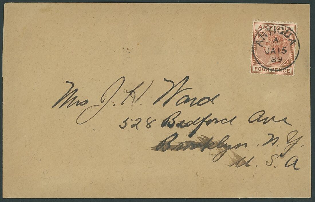 1889 (15 Jan.) envelope to New York, bearing 1887 4d. chestnut tied by superb c.d.s. and showing arrival datestamp (3.2) on reverse