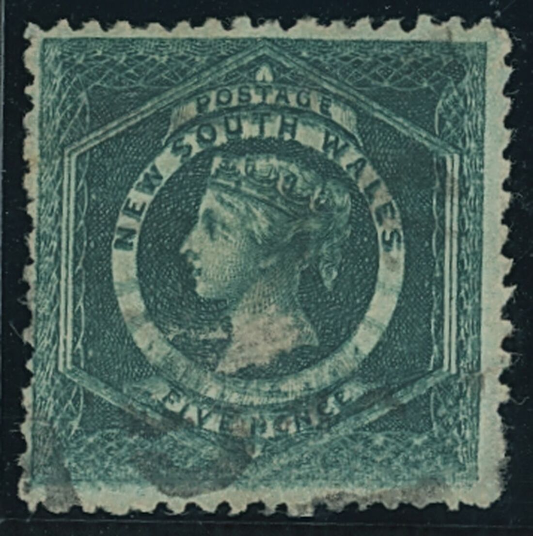 1882-85 Diadem, perf 11x12 5d. blue-green showing design partially double (second impression weak and shifted downwards), with parcel cancel; small central surface scuffs. Ceremuga Certificate (2016). S.G. 233d var. Photo
