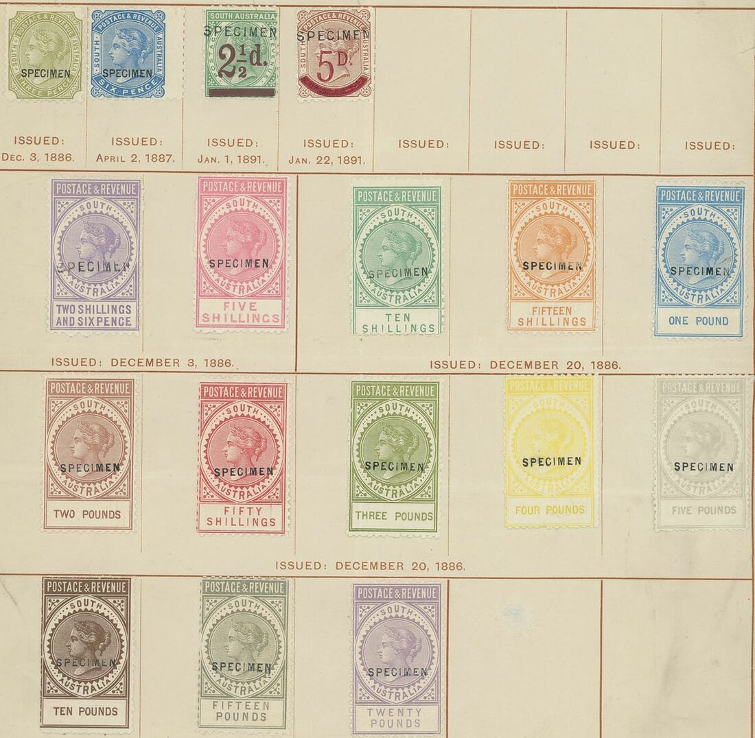 1891 Presentation sheet with "100 - 18-6-91" imprint, bearing 1886-96