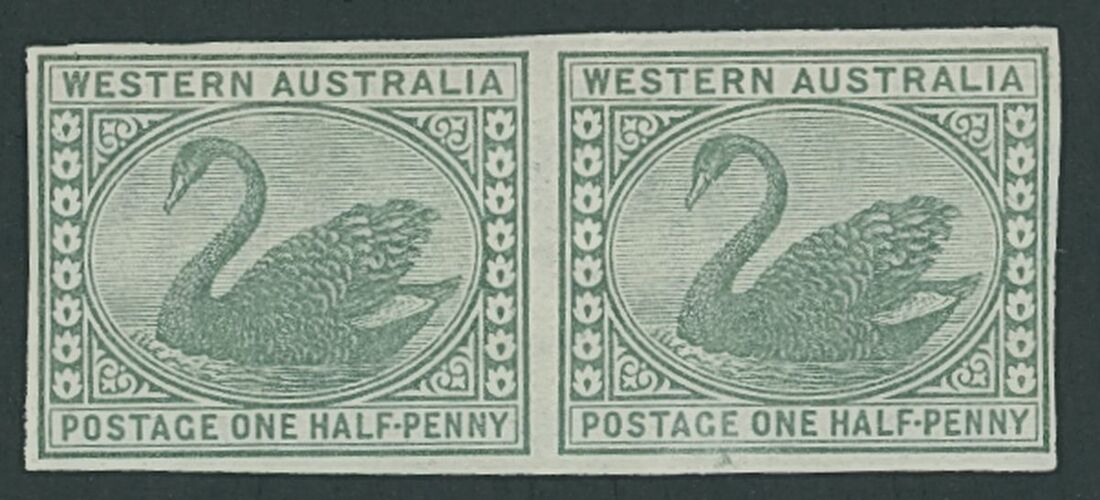 1885-93 CA ½d. green imperforate pair on gummed watermarked paper, fine