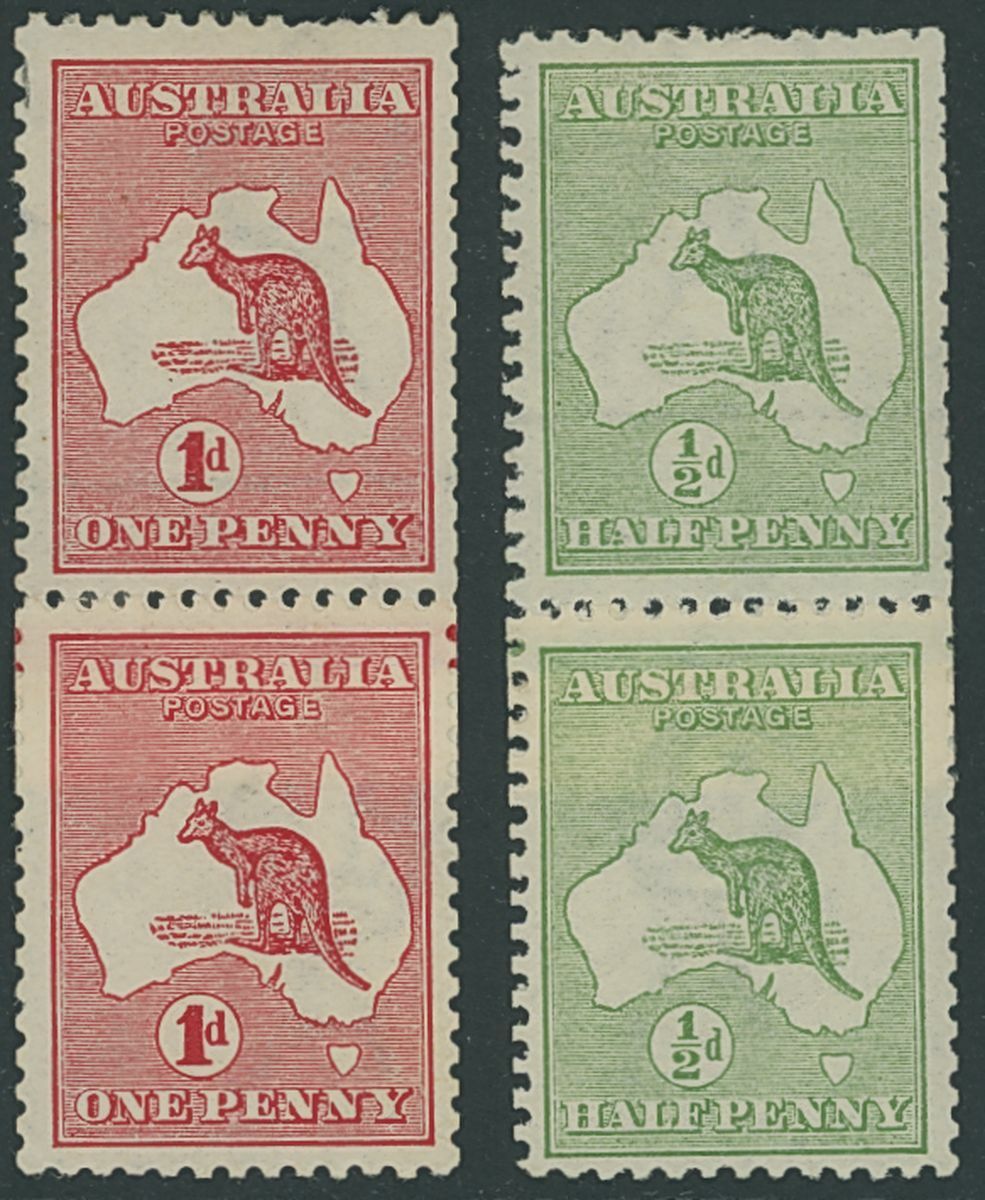 1913 First watermark, ½d. green and 1d. rose-red Die I, both in a vertical pair showing coil join, fine mounted mint. BW 1A, 2C