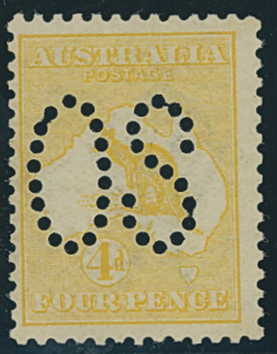 1913 perforated large "OS", 4d. orange-yellow, centred to left, a fraction gum toned otherwise fine unmounted mint. S.G. O6a, £700; BW 15Cba, $1,750