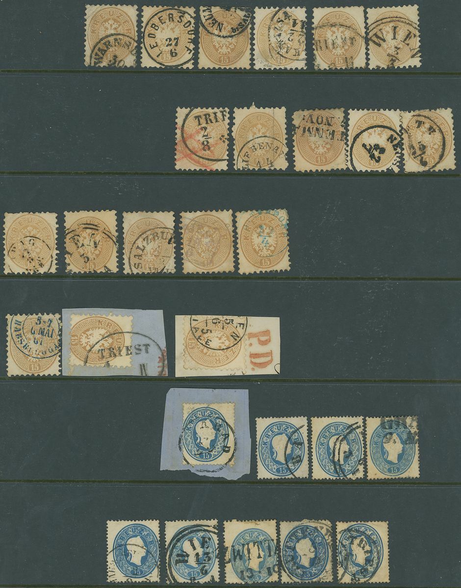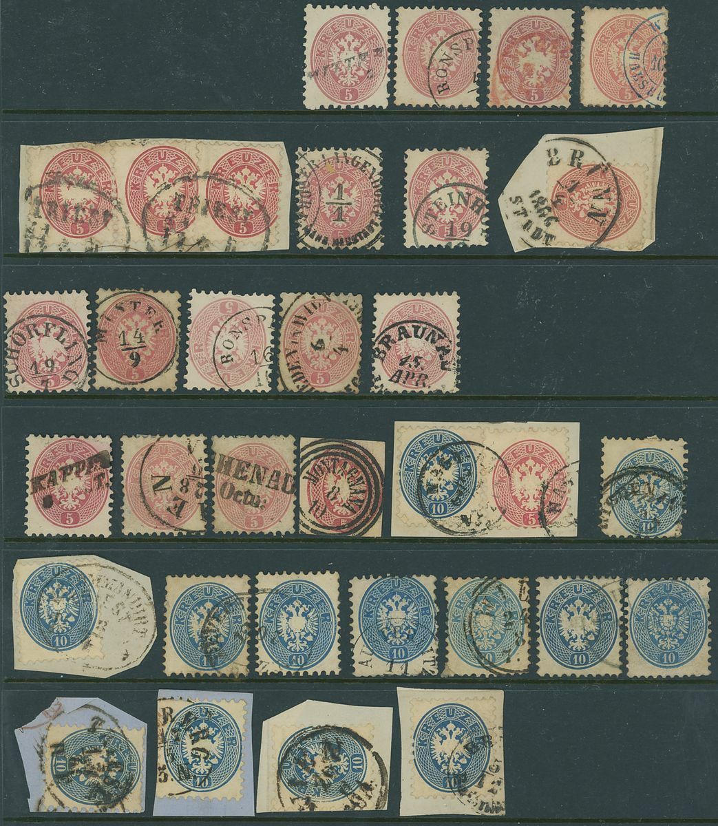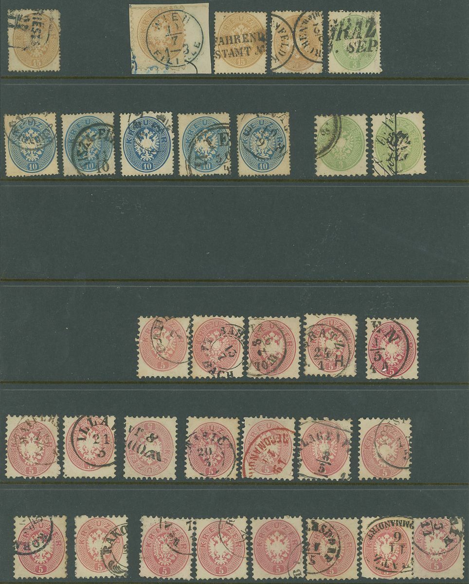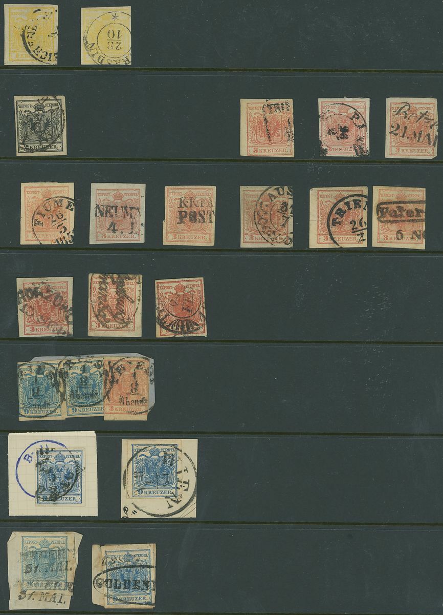 1850-1933 collection arranged on nine hagner pages and three album pages with 1850-58 used duplicated range (80+) including 1kr. (2), 2kr., 6kr. showing small part of St. Andrew Cross; 1933 selection (39) of mint labels prepared for the WIPA exhibition, mixed condition, an interesting lot for the student of the area.