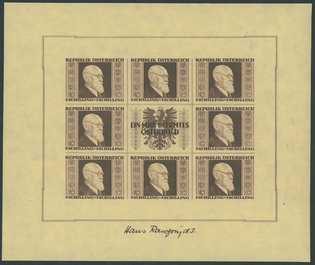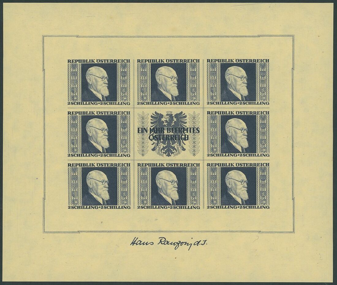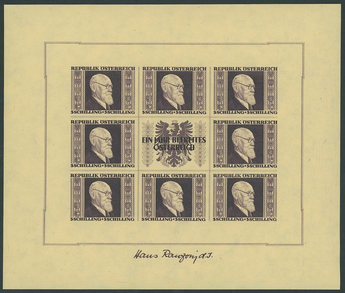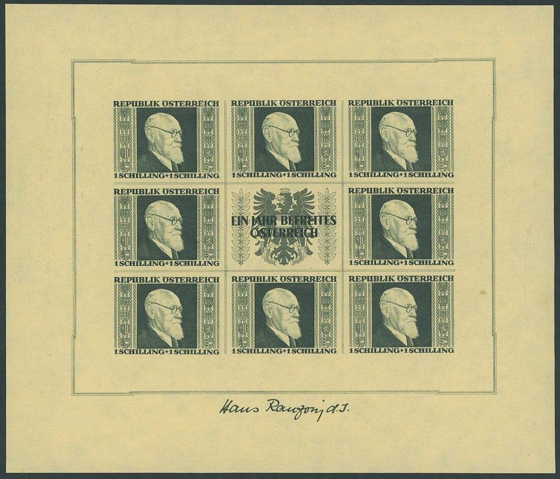 1946 Renner, 1s.+1s. to 5s.+5s., the set of four miniature sheets, unmounted mint; slightly mixed condition the 5s.+5s. with usual slight wrinkles. S.G. MS976 £3,250