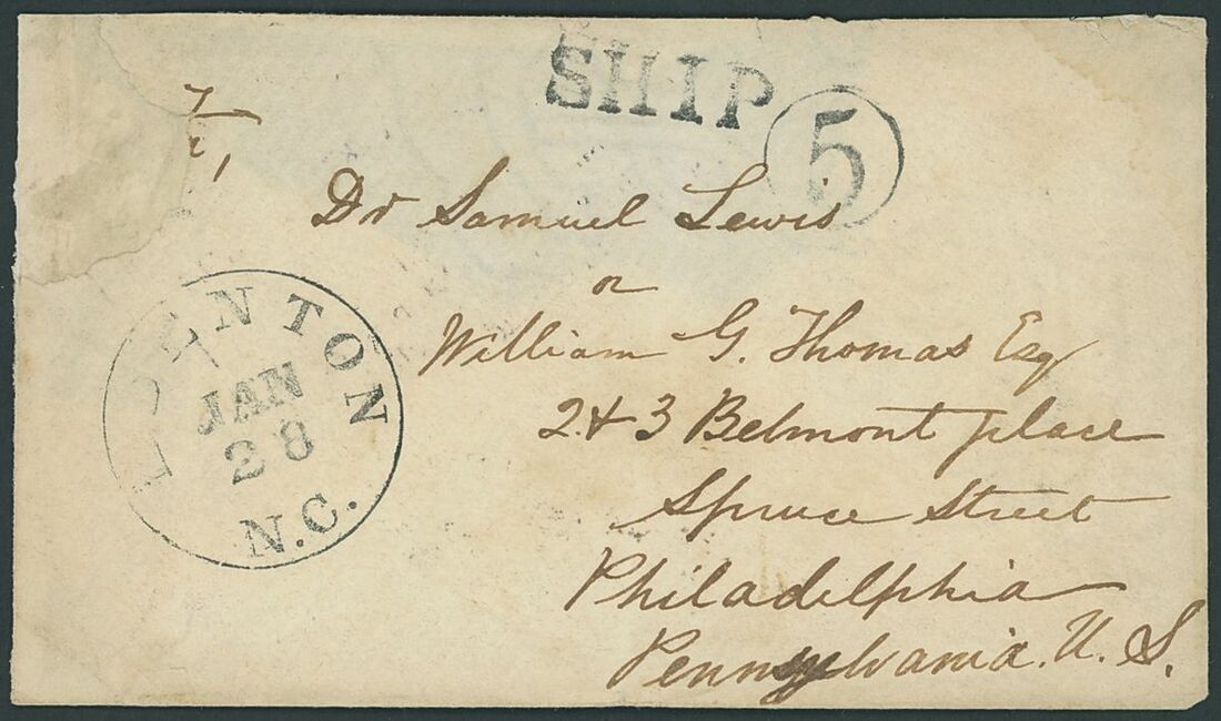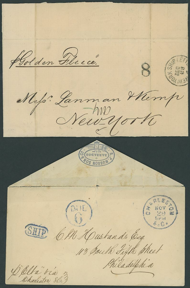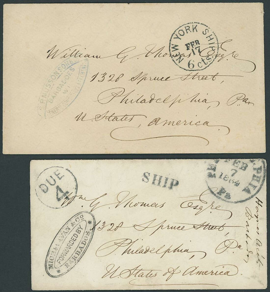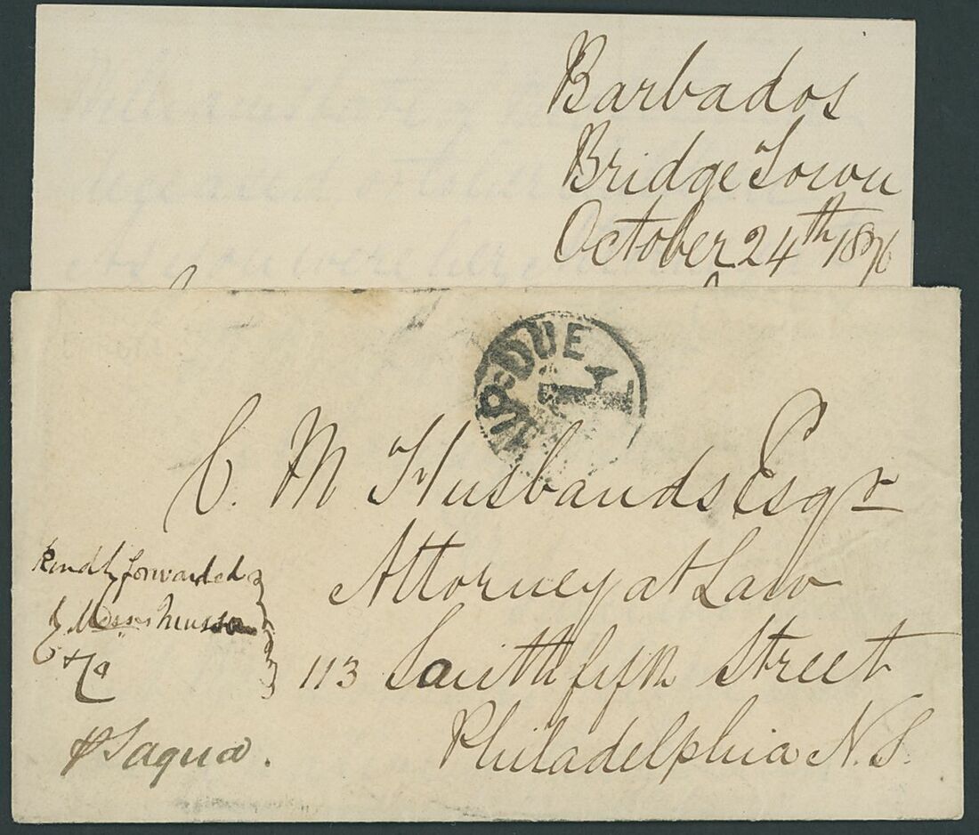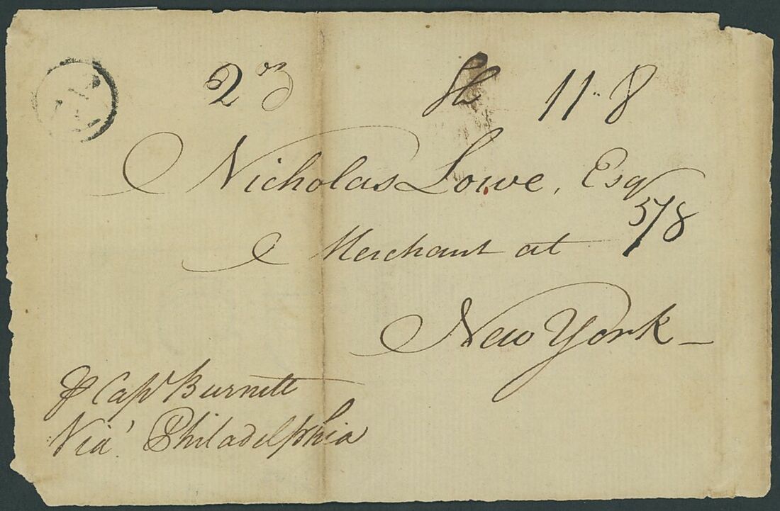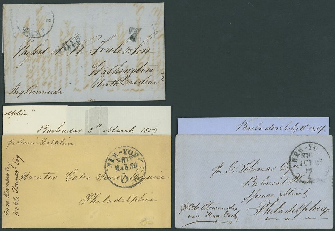 1789-1876 a small group of mail to America (10) including 1789 front to New York seemingly rated "11:8" with American Bishop Mark; 1855 entire letter to North Carolina "By Bermuda", straight line "