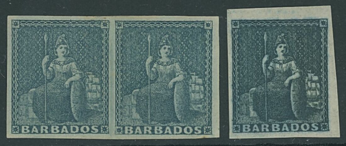 1852-55 (2d.) greyish slate on blued horizontal pair with large part original gum, large margins, fine and fresh. Also prepared for use but not issued (-) slate blue, original gum, large margins and fine. Each with B.P.A. Certificate (2022). S.G. 4a, 5a, £678. Photo