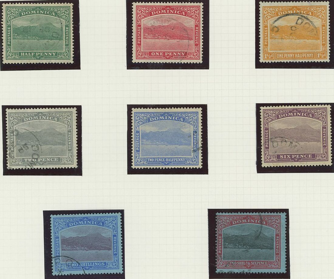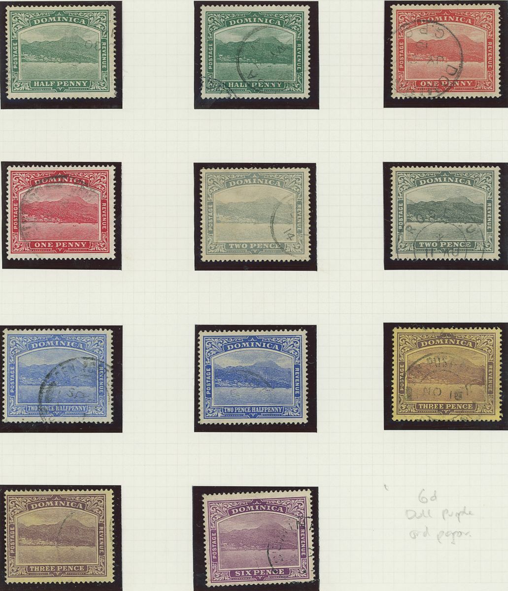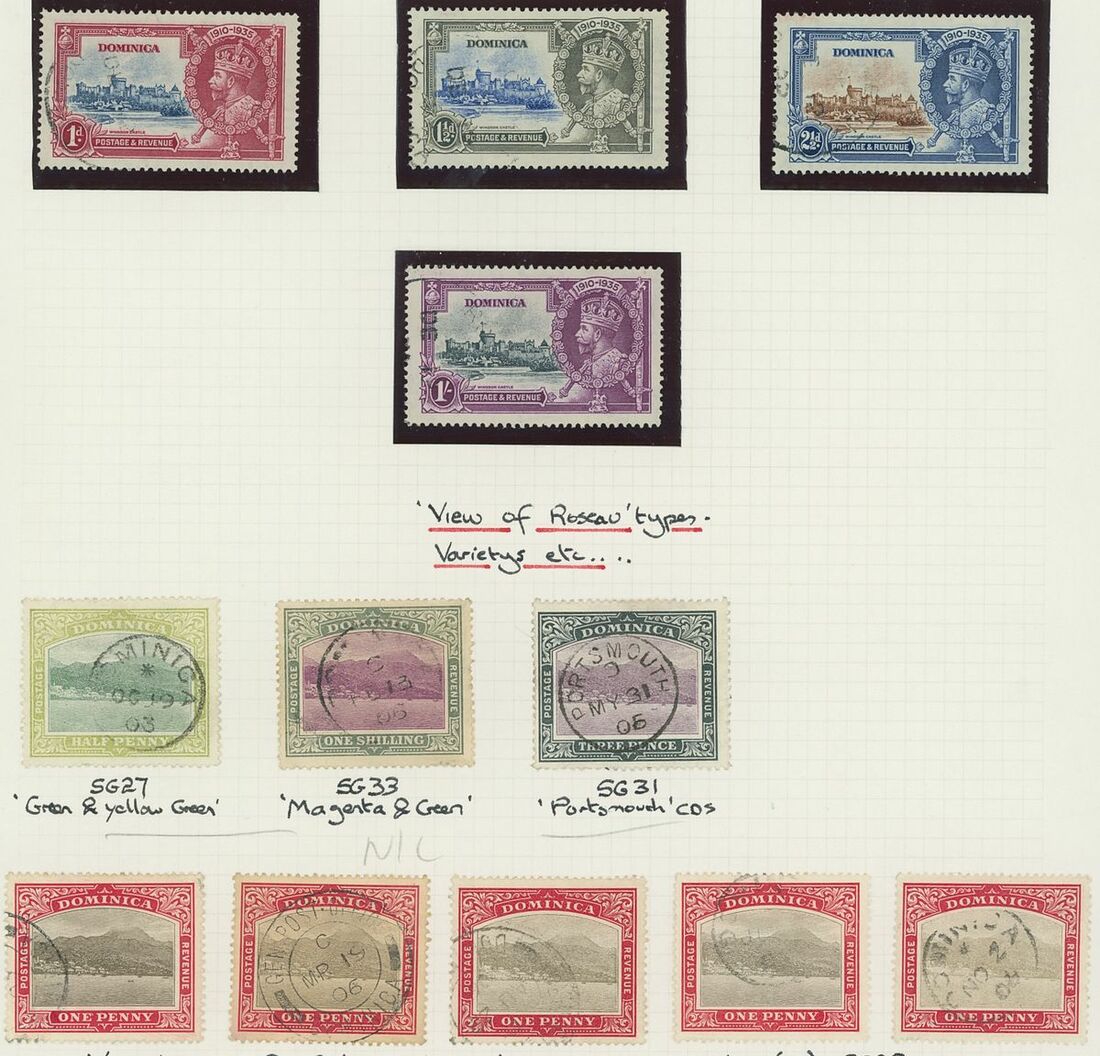 1874-1935, used collection (100+) on pages, including 1874 6d., 1/-, 1877-79 ½d. to 1/-, 1882-83 red "½" on half 1d. (four on piece), "Half Penny" on half 1d., 1886 ½d. on 6d., 1d. on 1/-, 1886-90 6d., 1907-08 ½d. to 5/-, 1908-20 5/-, 1921 2/6d., cancellations, etc., chiefly good to fine