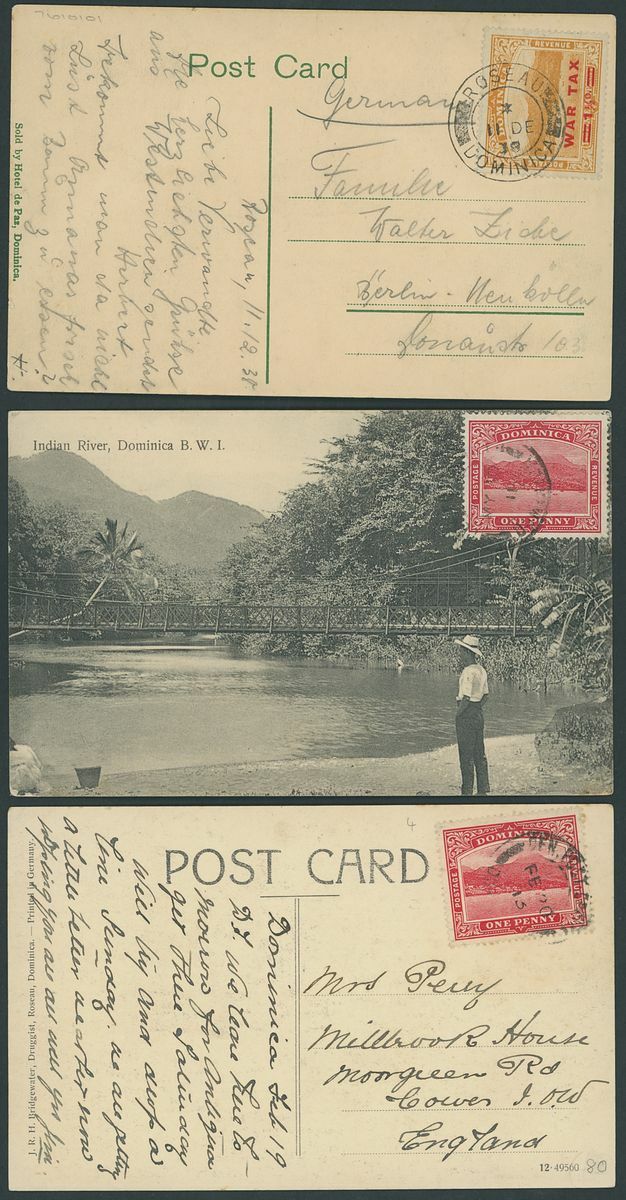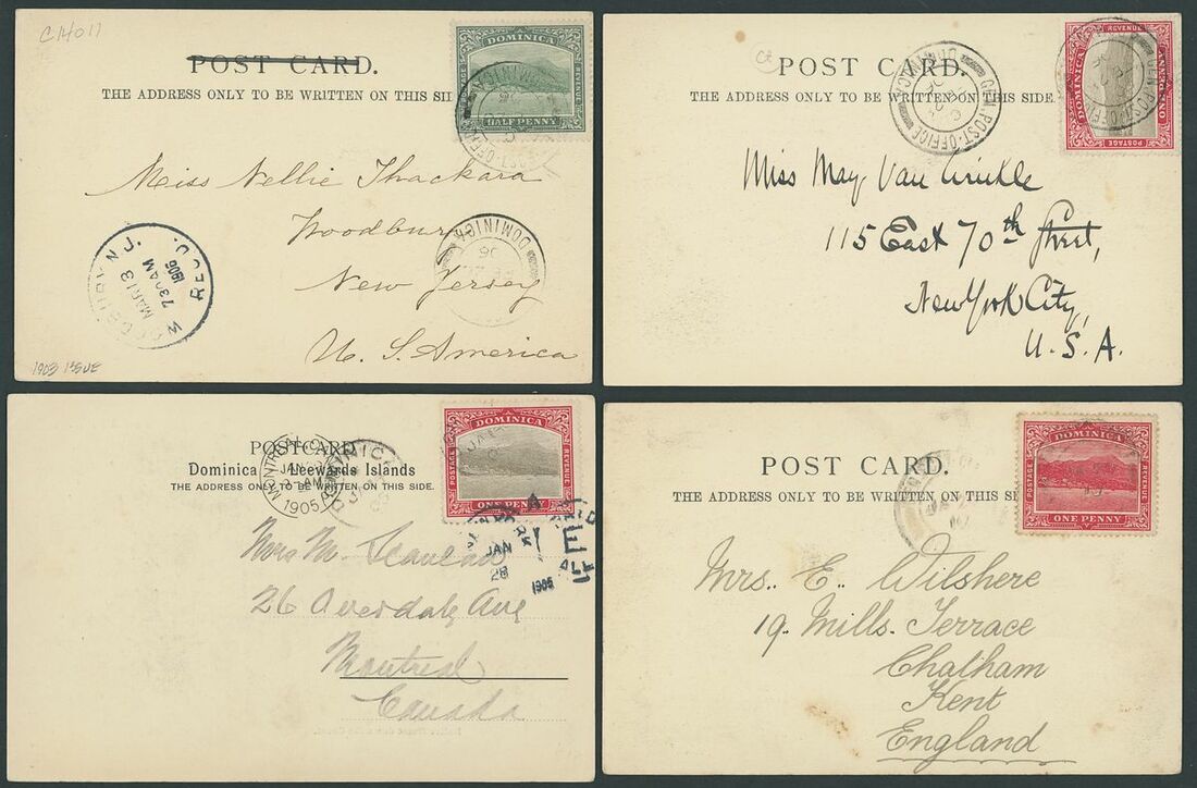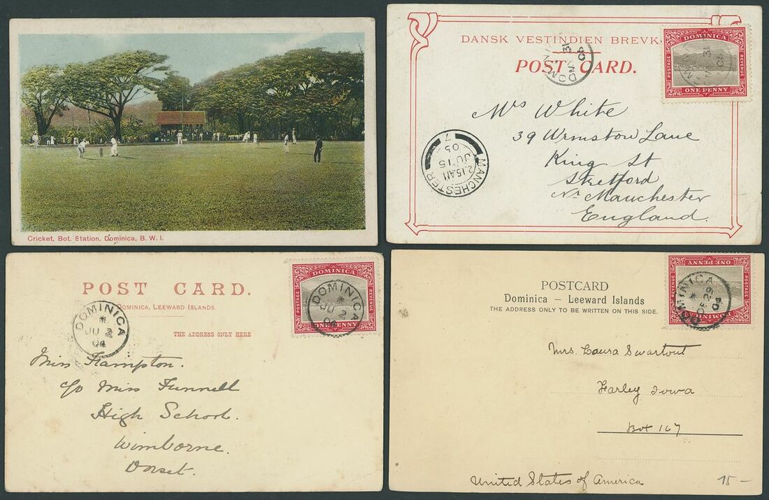 1904-18, ten picture postcards mostly used to England or the United States, ½d., 1d. or War Tax 1½d. frankings, also unused coloured card (Cricket, Bot. Station, Dominica); good to fine .