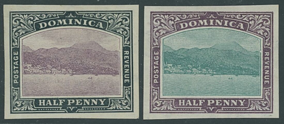 1908-20 ½d. dull purple and grey black, ½d. green and purple, imperforate colour trials, original gum; fine