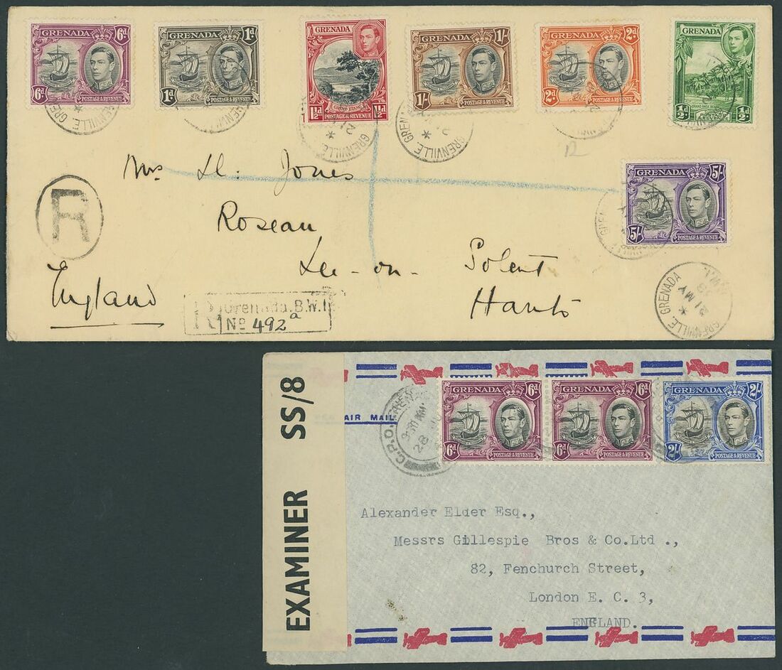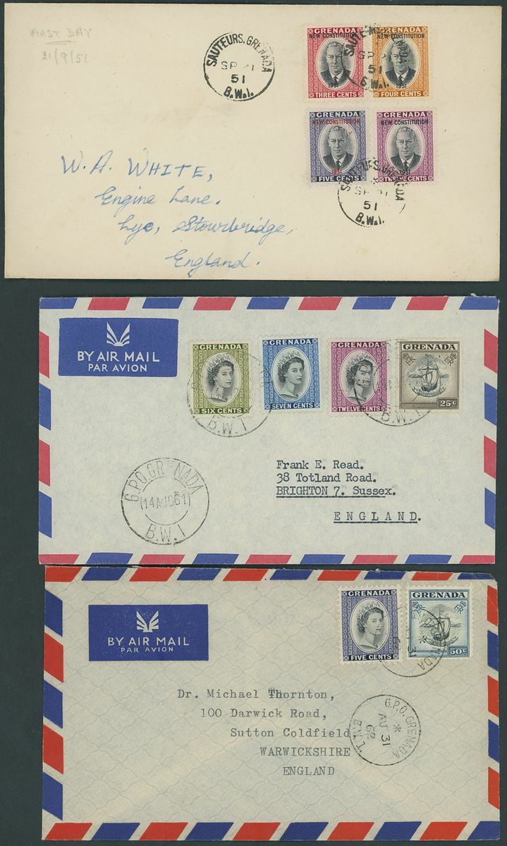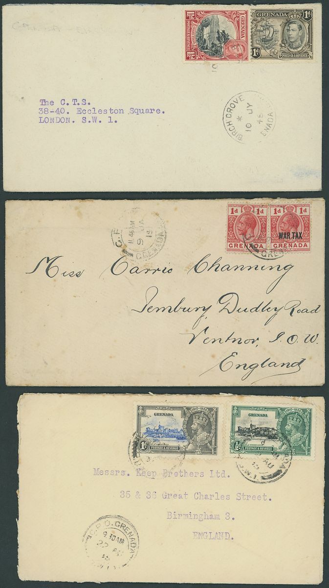 1908-78, selection of thirty-two covers or cards, including 1908 p.p.c. to London franked ½d. (2), 1930 (20 July) two first flight Grenada to Trinidad covers with different 7d. frankings, Registered, Censored, etc., mixed condition