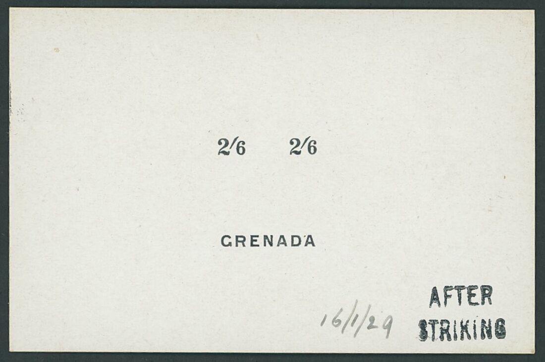1921-26 2/6d., die proof (92x60mm.) of the country name and duty tablets in black on glazed card, marked "