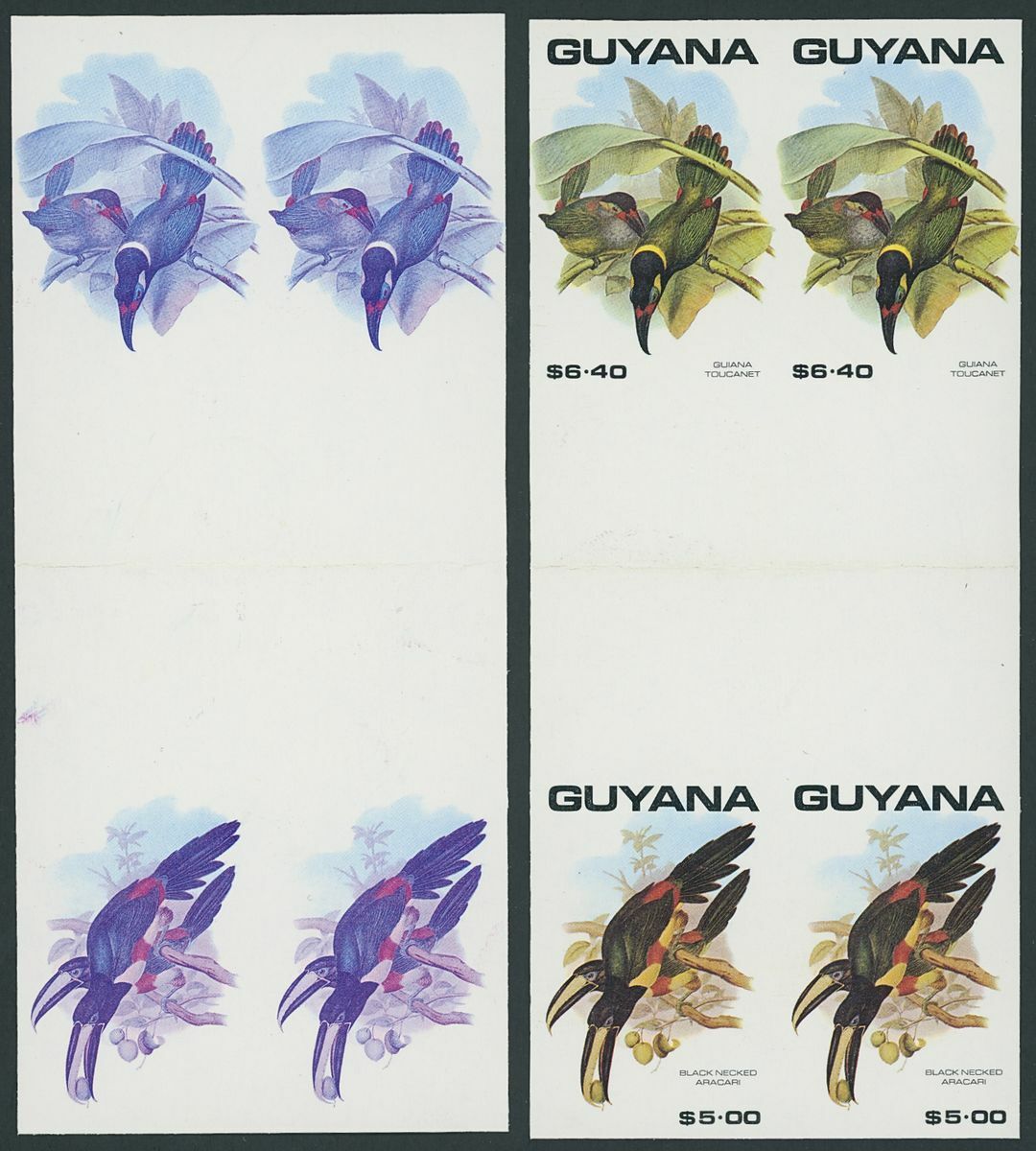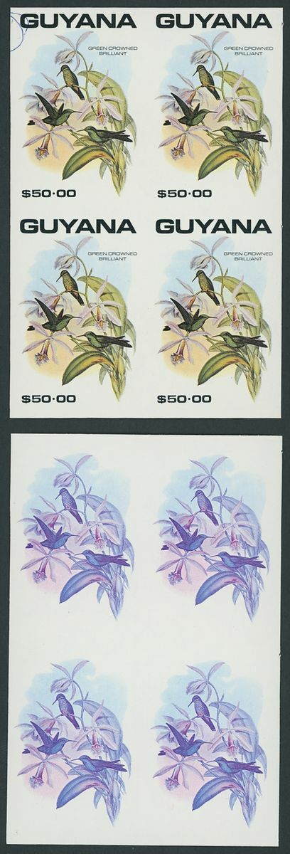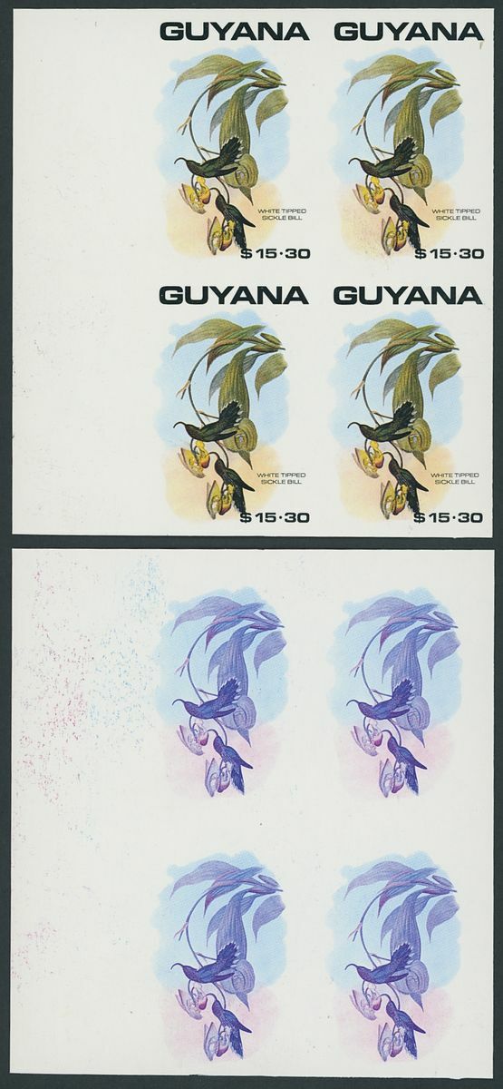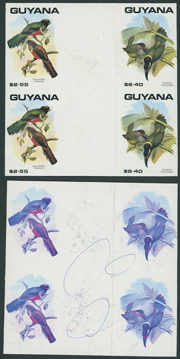 1990 Birds printer's imperforate proofs in various multiples, neatly mounted on pages (23).